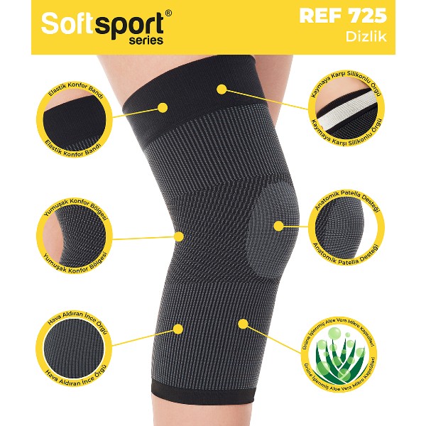 Variteks Softsport Dizlik, diz ekleminde oluşabilecek zorlanma ve yaralanmalara karşı koruma sağlamak, ağrıyı hafifletmek ve hareket sırasında dengeyi artırmak amacıyla tasarlanmış, yeni nesil bir ortopedik destektir. Softsport serisine özgü ince örgü teknolojisi ve nefes alabilen kumaş yapısı, klasik bandajlara göre çok daha konforlu ve hafif bir kullanım sunar.