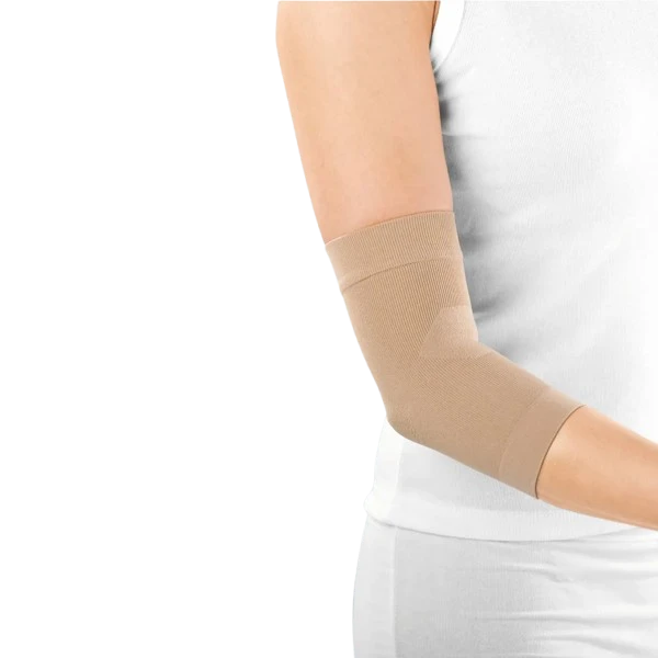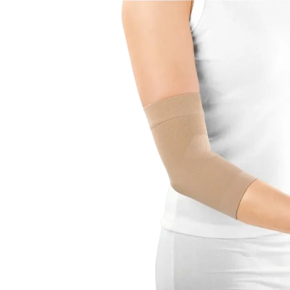medi elastic elbow support, dirsek eklemine kompresif destek sağlayan, yüksek elastikiyetli örme yapıda ve anatomik formda bir dirsek bandajıdır. İki yönlü esneyen örgü, eklemi saran dengeli basınçla stabilizasyonu destekler; ödem ve eklem içi sıvı birikiminin (efüzyon) gerilemesine yardımcı olabilir. İnce yapısı kıyafet altında kullanım için uygundur ve gün boyu konfor sunar.