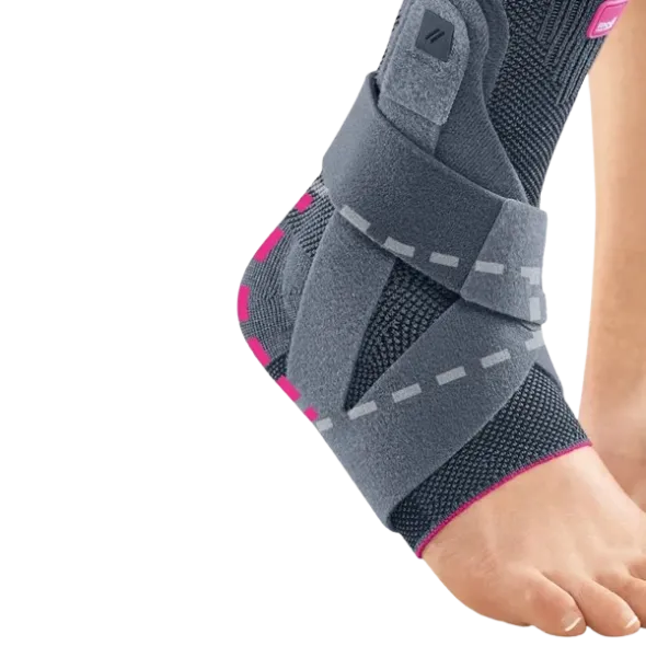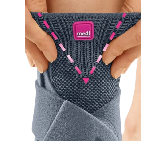 Levamed® active, ayak bileğinde yumuşak doku kompresyonu ve hedefli stabilizasyon sunan, 3D silikon pedli ve çıkarılabilir/işaretli kısaltılabilir stabilizasyon kayışlı konfor ayak bileği desteğidir. Yüksek enine-boyuna esneme sağlayan konfor örgüsü, özellikle yüksek taraklı ayaklarda giyme ve kullanım rahatlığı sunar. 90° örgü açısı, belirginleştirilen ayak kemeri ve uzatılmış taban altı kesimi ile ayakkabı içinde dahi daha doğru ve güvenli oturuş elde edilir. CCL II kompresif kumaş, ödemin kontrolüne ve propriosepsiyonun desteklenmesine yardımcı olur.
