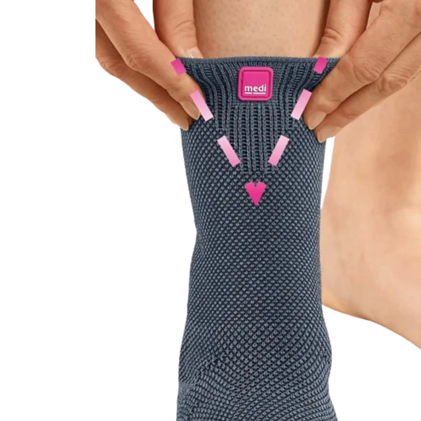 Levamed®, ayak bileği çevresinde yumuşak doku kompresyonu sağlayan, 3D silikon pedli ve ayakkabı içinde dahi konforlu kullanıma uygun konfor ayak bileği desteğidir. Üst kenardaki esneme bölgesi ve yüksek taraklı ayaklara özel instep (tarak) rahatlatma alanı sayesinde giyimi kolaydır. 90° örgü açısı, belirginleştirilen ayak kemeri ve uzatılmış taban altı kesimi ile daha hassas ve güvenli oturuş sunar.