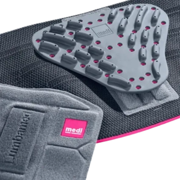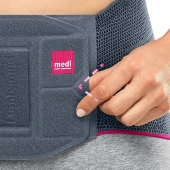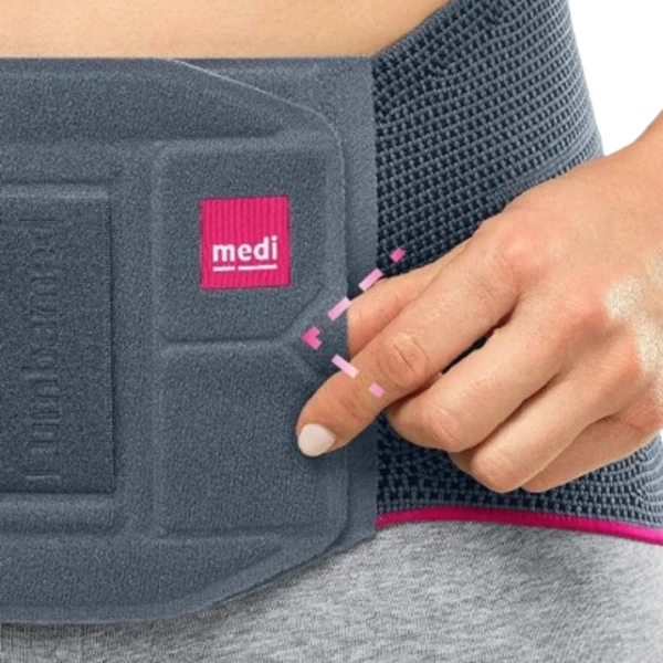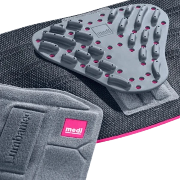 Lumbamed® plus, bel (lumbal) ve sakroiliak bölgede ağrı yaşayan kullanıcılar için, Vario-Flex masaj pedli stabilizasyon sağlayan lumbosakral bel desteğidir. Kompresif örgü ile 3D profilli Vario-Flex pedin etkileşimi, basıncı dengeli biçimde dağıtarak duruşu destekler ve ağrı kontrolüne yardımcı olabilir. Çift taraflı el halkaları sayesinde takıp çıkarması pratiktir; hareket ve oturma sırasında konfor için katlanabilir kapama kenarları ve “Comfort Zone” anatomik kesim bulunur. Nefes alabilir Clima Comfort yapısı teri ciltten uzaklaştırarak gün boyu rahatlık sunar.
