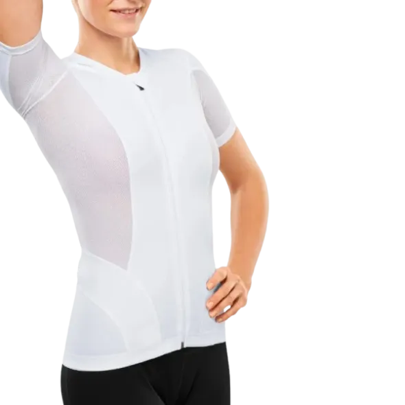 Postür hatırlatıcısı: Omuz–sırt bölgesindeki yapısal elemanlar ve hafif kompresif kumaş, hedef pozisyondan sapıldığında kullanıcıyı nazikçe geri yönlendiren “propriyoseptif uyarı” sağlar.