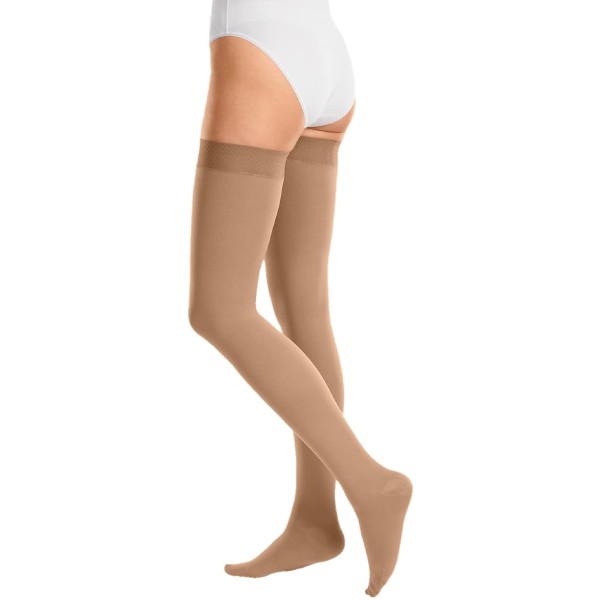 Mediven Cotton, bacaktaki kan akışını iyileştirerek varis, ödem ve diğer bacak rahatsızlıklarının tedavisinde etkilidir. Diz üstü boyu ile, bacaklarınızın üst kısmını da destekler.