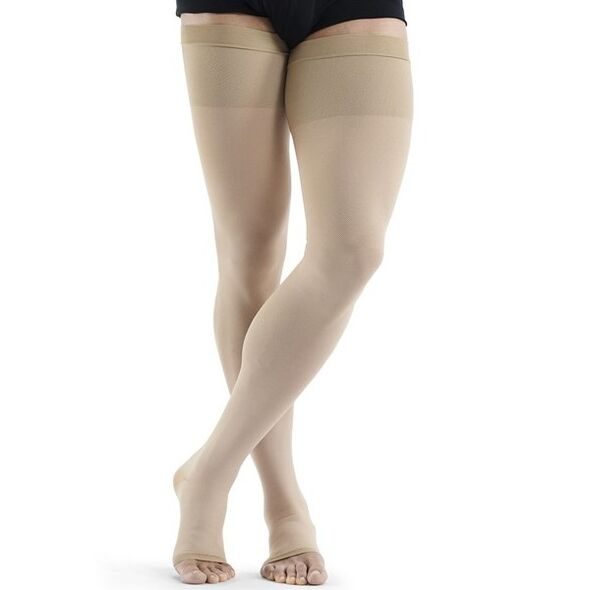 Sigvaris Specialities Traditional Diz Üstü CCL3 (Yüksek Basınçlı) Varis Çorabı, kauçuk içerikli esnek yapısı ve hava geçirgen örgüsü sayesinde gün boyu stabil, güçlü ve konforlu kompresyon sunan bir medikal diz üstü çoraptır. Bilekten yukarı doğru azalan 34–46 mmHg dereceli basınç profili, hekim önerisi doğrultusunda ileri düzey venöz şikâyetlerin yönetiminde güvenilir destek sağlamayı hedefler. Ten rengine yakın görünümü kıyafetlerle uyumlu, zarif bir duruş sağlar.