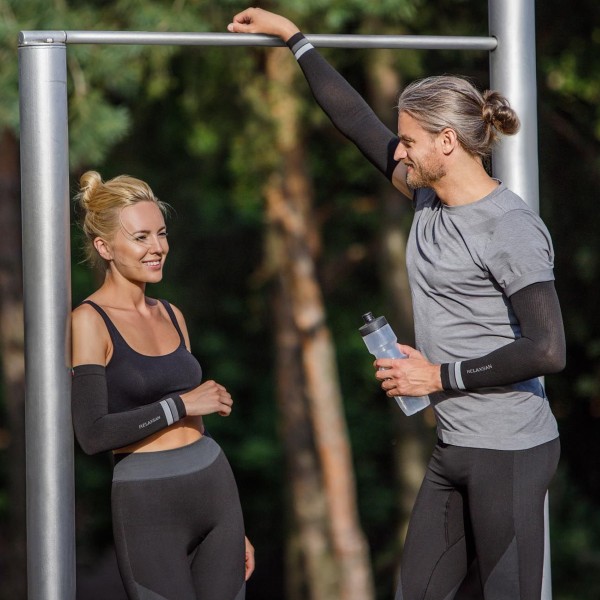 Yüksek kaliteli Dryarn elyafından üretilen, çift olarak satılan spor kompresyon kollukları, yüksek performans sunar. Relaxsan spor kollukları kan dolaşımını destekleyerek kompresyon sağlar. Sıkıca sararak kasları destekler ve yırtılmaların önüne geçer.