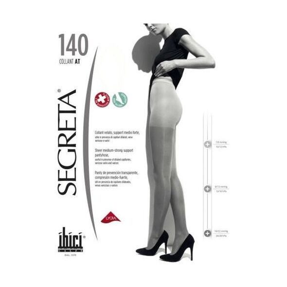 Segreta Ibici Külotlu Seyahat Çorabı 140 Den, uzun yolculuklarda ve yoğun iş günlerinde bacaklara nazik destek sunan, şık görünümlü hafif basınçlı bir külotlu kompresyon çorabıdır. Bilekten yukarı doğru azalan dereceli kompresyon, ayak bileği çevresindeki şişlik ve gün sonu yorgunluk hissinin azaltılmasına yardımcı olur. Opak/yarı opak görünümü ve pürüzsüz dokusuyla elbise ve eteklerle uyumlu modern bir duruş sağlar.