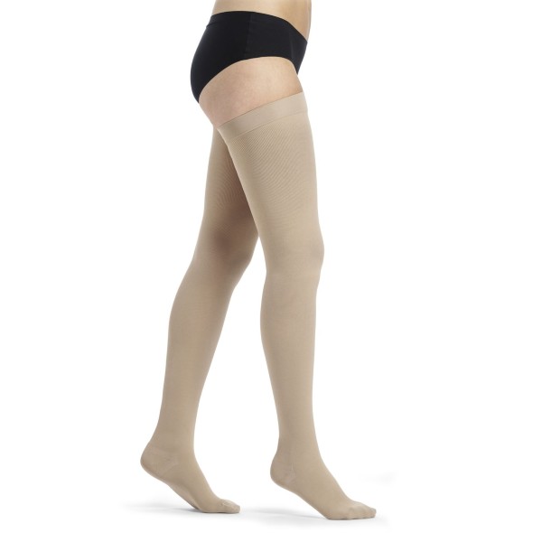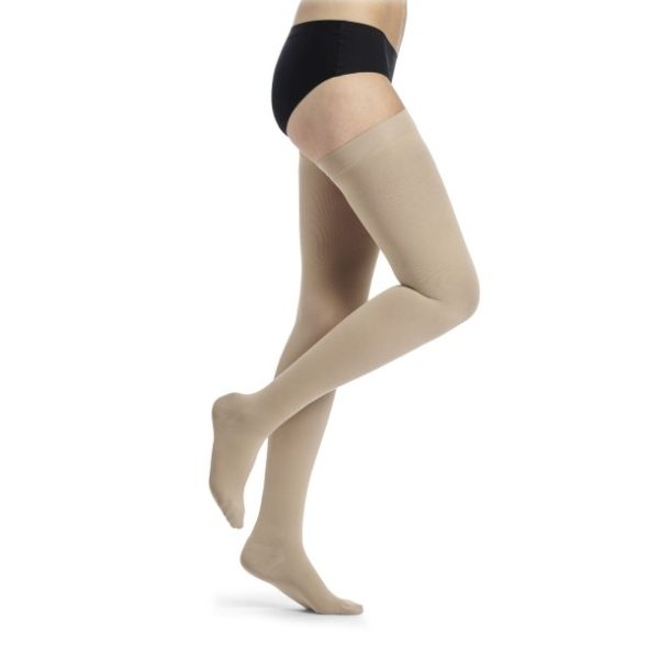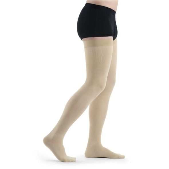 Sigvaris Essential Thermoregulating Diz Üstü Orta Basınçlı Varis Çorabı (Eski adı ile Cotton) hassas ciltler için özel olarak üretilmiştir. Kullanılan özel pamuk ipliği çorapların iç yüzeyine örülmüştür ve bu sayede cilt ile doğrudan temas halindedir.