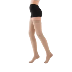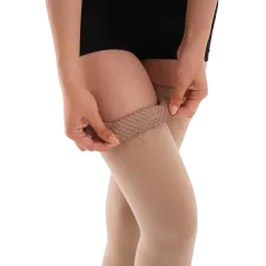 Diz üstü varis çorabı, uyluğa kadar uzanan yapısıyla tüm bacakta daha kapsayıcı kompresyon sunar. Üst bant (kaydırmaz/silikon içermeyen hassas seçenekler) ve anatomik kalıp uzun saatlerde kararlı duruş hedefler. Özellikle ofis–seyahat kombinasyonlarında şık ve pürüzsüz bir siluet sağlar.