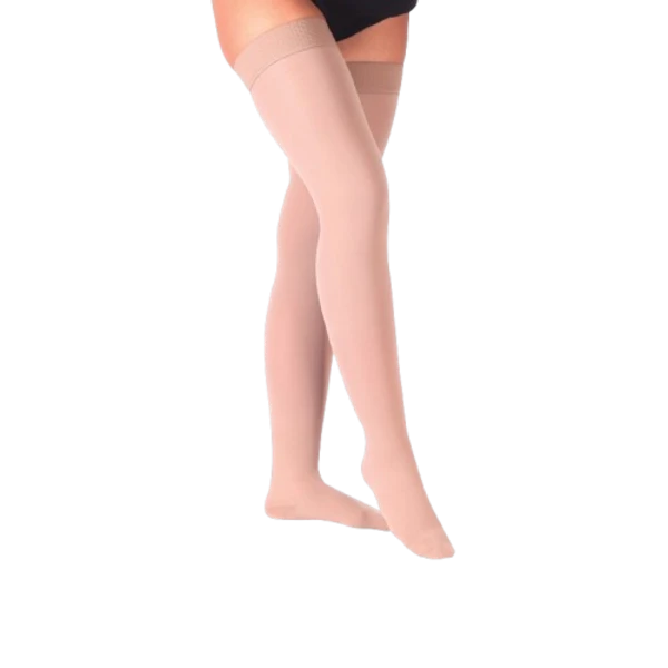 Varisocks Diz Üstü Orta Basınçlı Varis Çorabı, ayak bileğinden uyluğa kadar tüm bacak boyunca dereceli kompresyon sunar. Geniş yüzeyde kontrol ve destek arayan, gün içinde aktif kalan kullanıcılar için konforlu bir çözümdür. Esnek yapısı ve anatomik örgüsüyle uzun süreli kullanıma uygundur.