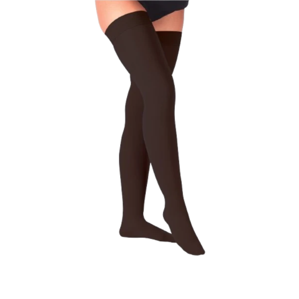 Varisocks Diz Üstü Orta Basınçlı Varis Çorabı, ayak bileğinden uyluğa kadar tüm bacak boyunca dereceli kompresyon sunar. Geniş yüzeyde kontrol ve destek arayan, gün içinde aktif kalan kullanıcılar için konforlu bir çözümdür. Esnek yapısı ve anatomik örgüsüyle uzun süreli kullanıma uygundur.